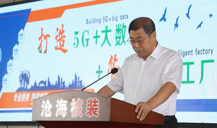 潘佳庭在致辭時(shí)指出,近年來,鹽山縣圍繞產(chǎn)業(yè)轉(zhuǎn)型升級,加快智能化生產(chǎn)管理進(jìn)程,努力推進(jìn)管道裝備產(chǎn)業(yè)向數(shù)字化轉(zhuǎn)型和智能化提升,實(shí)現(xiàn)管道裝備產(chǎn)業(yè)智能制造、智慧運(yùn)行。滄海核裝備科技股份有限公司作為我縣高 端管道制造企業(yè),積極響應(yīng)政府號召,與國內(nèi)知名科研院所和運(yùn)營商合作,謀劃了“5G+大數(shù)據(jù)+管道智能工廠”項(xiàng)目,該項(xiàng)目的實(shí)施將進(jìn)一步加快推動全縣工業(yè)轉(zhuǎn)型升級步伐,為鹽山經(jīng)濟(jì)社會高質(zhì)量發(fā)展注入新的活力。